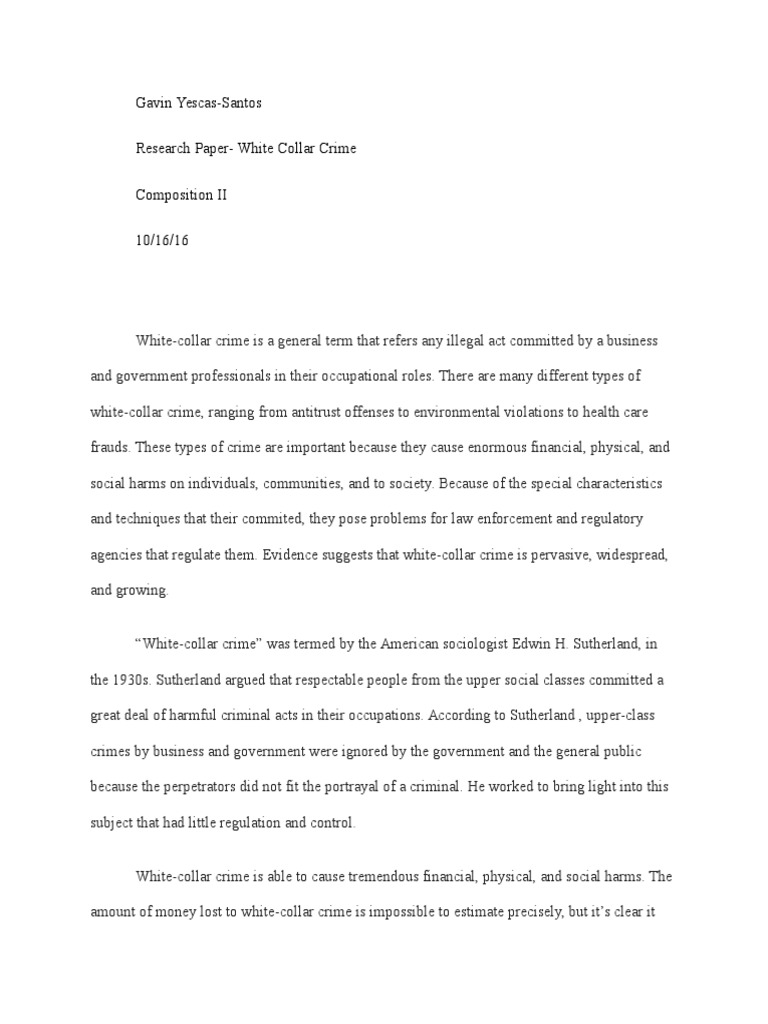 Essay on white collar crime recommendations to fight white collar crime in the community include the following actions by the state:. Fighting white-collar crime is one of the main problems of modern society. This struggle must be carried out in all possible ways. Since the damage from such crimes is huge, the end justifies any means. According to the FBI, between andwhite-collar crimes amounted 3.
